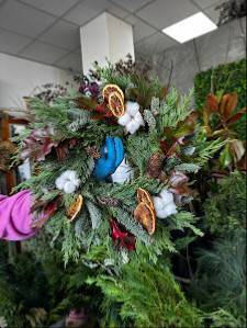 Acudí a un taller de coronas navideñas y quedé muy contenta, te ayuda en todo y tienes muchas opciones de flores y accesorios para utilizar a tu gusto además nos dió un super desayuno, nos vemos en otro!!